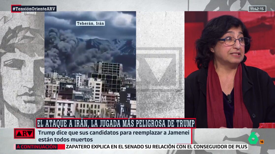 La politóloga iraní, Nazanin Armanian, responde de forma directa a la pregunta que le formula Antonio García Ferreras, en la mesa de debate de Al Rojo Vivo: "¿Qué capacidad tiene ahora mismo el régimen teocrático chií de Irán de resistir estos ataques tanto de Estados Unidos como de Israel?".
