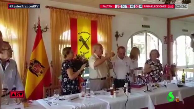 Su intervención acabó con varios "¡vivas!" a la Guardia Civil, a España y a Franco, apenas unos días antes de que el Gobierno de Sánchez lleve a cabo la exhumación de los restos del dictador.