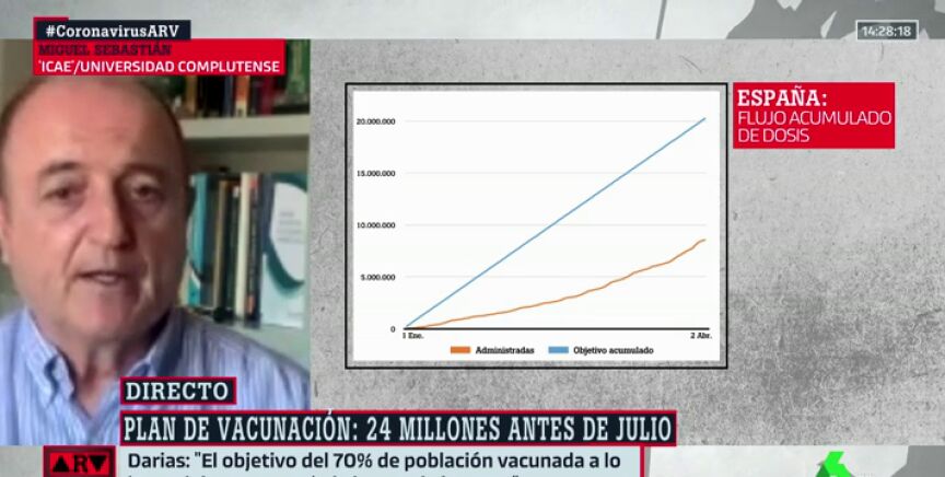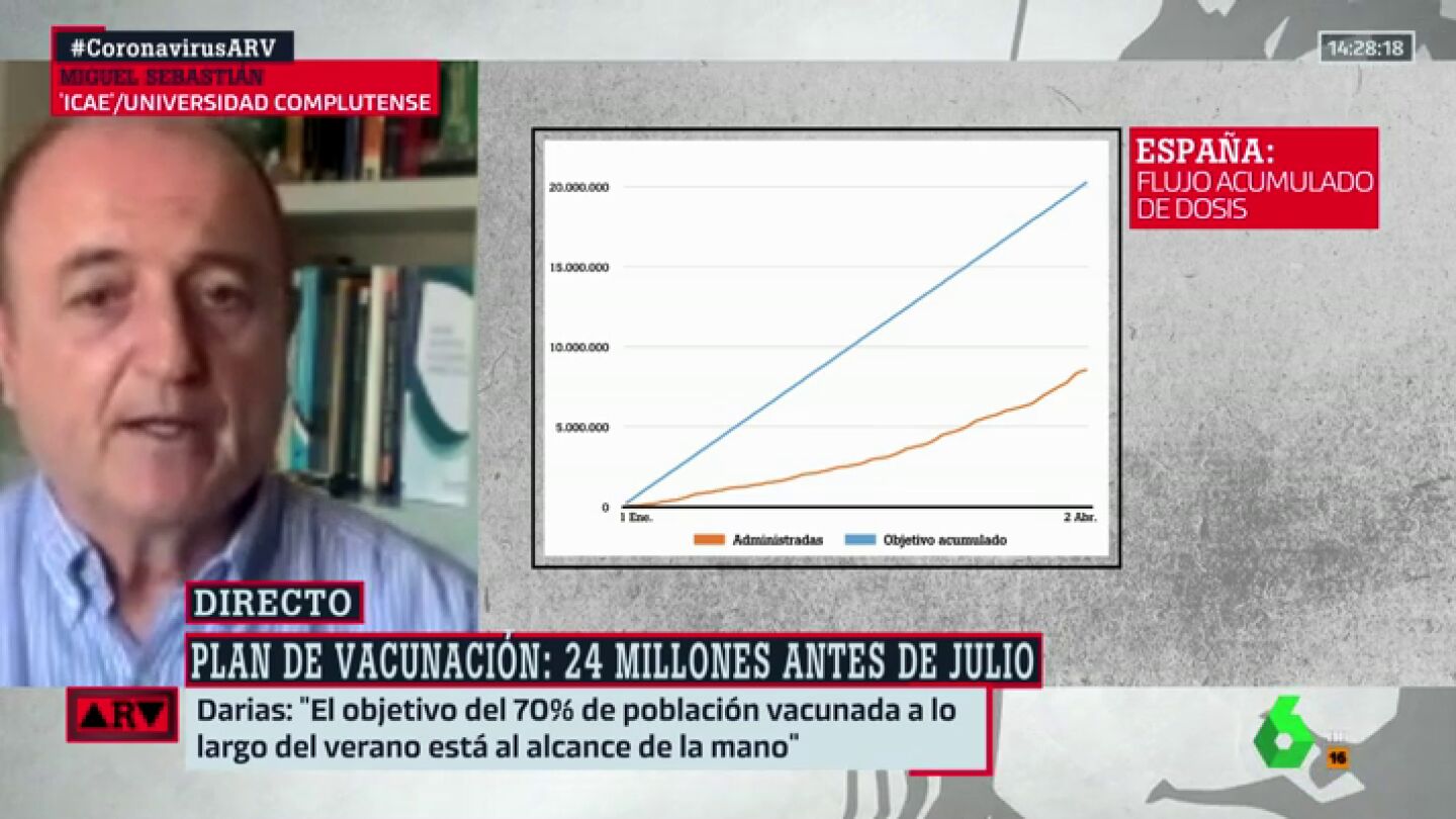 ¿Es posible que se alcance el 70% de la población vacunada el 1 de julio? Para Miguel Sebastián, es un objetivo que se puede cumplir, pero con una condición.