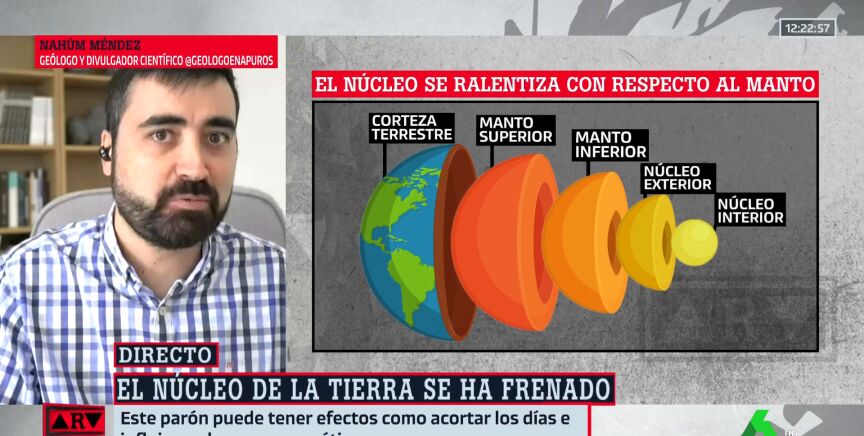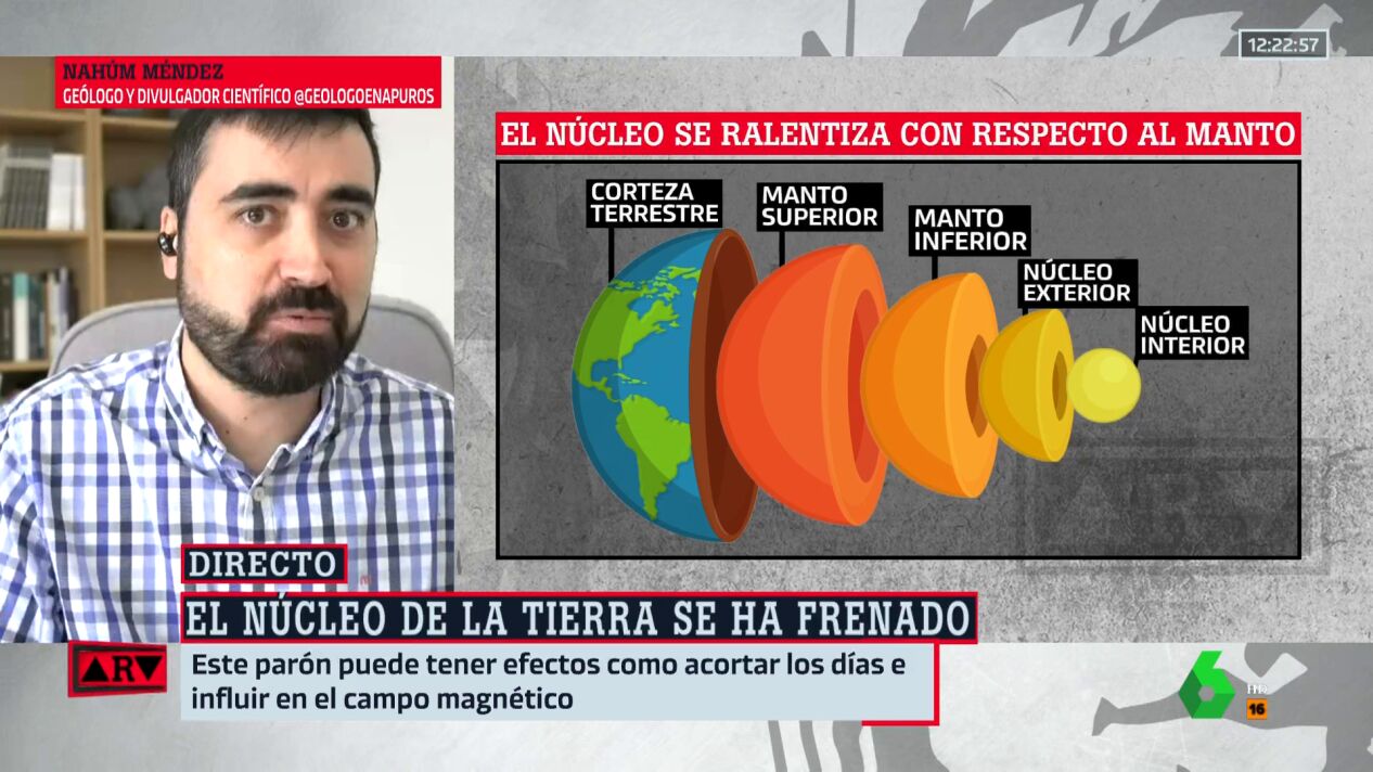Un estudio publicado en 'Nature Geoscience' sugiere que el núcleo de nuestro planeta se habría frenado e incluso estaría girando en sentido contrario. Esto afectaría al clima, al nivel del mar o a la duración de los días. El geólogo Nahúm Méndez aclara dudas sobre el tema en Al Rojo Vivo.