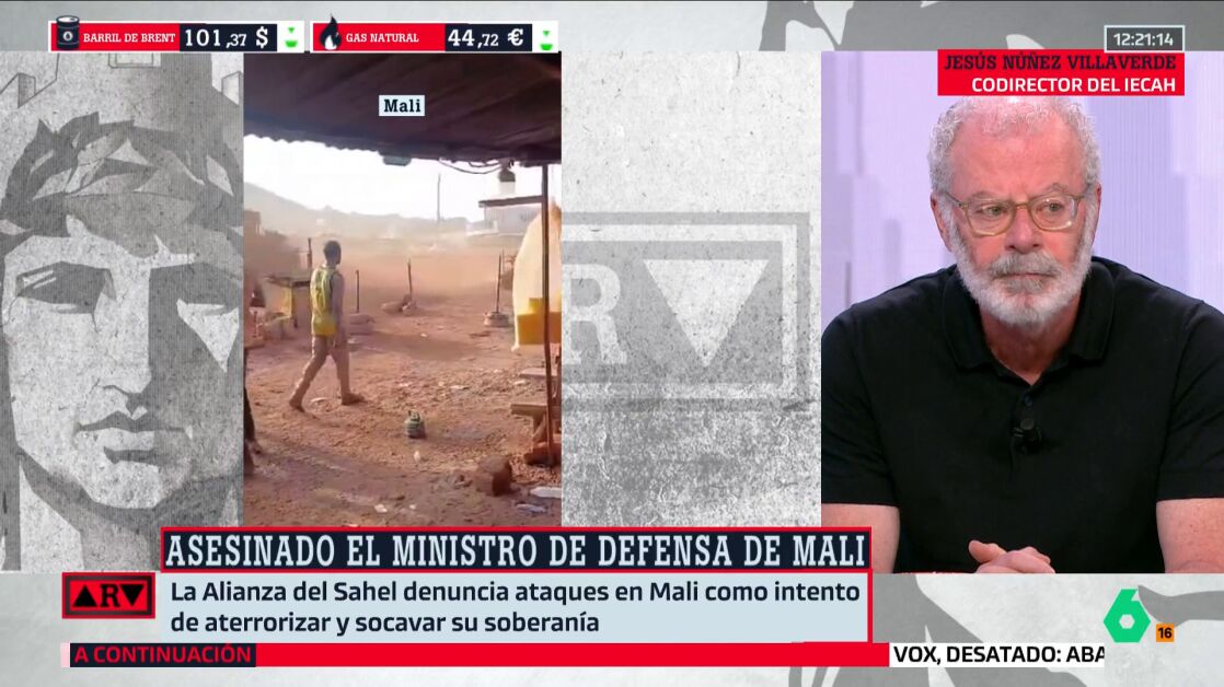 En Al Rojo Vivo, Jesús Núñez Valverde, codirector del IECAH, ha analizado el asesinato del ministro de Defensa de Malí en un ataque del Grupo de Apoyo al Islam y a los Musulmanes, filial de Al Qaeda en el Sahel, contra su residencia cerca de la base militar de Bamako. El experto advierte de un impacto que trasciende la región y afecta directamente a Europa.