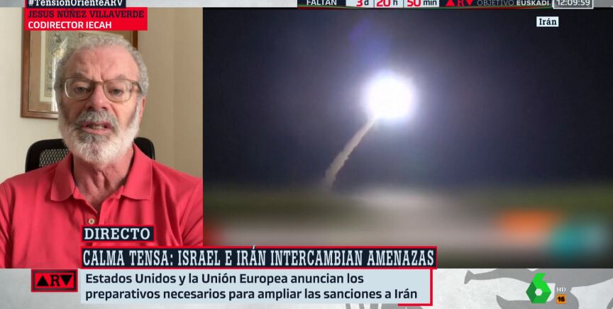 EEUU y la UE estudian sanciones a Irán tras el ataque a Israel, algo que para Jesús Núñez Villaverde, codirector del Instituto de Estudios sobre Conflictos y Acción Humanitaria (IECAH), es "uno de los detalles más claros de la doble vara de medida que existe a día de hoy en el Concierto Internacional".