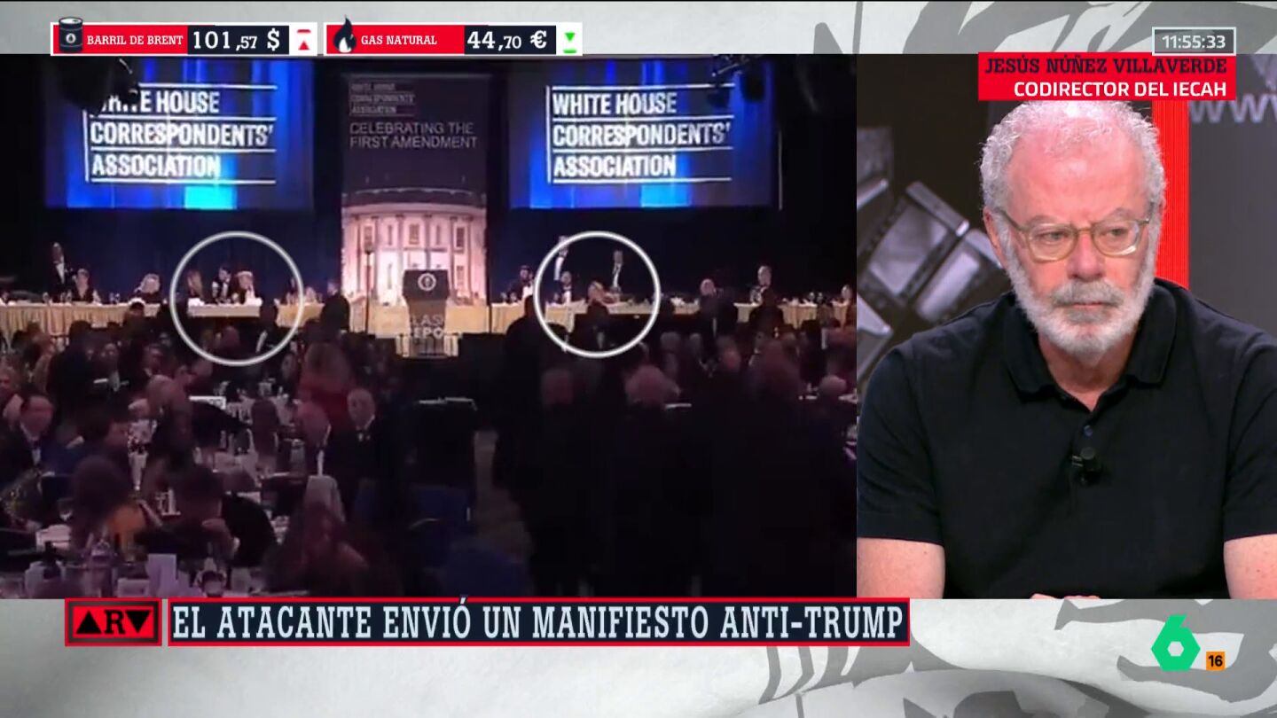 En cualquier caso, remata Núñez Villaverde, Trump "nos sigue demostrando que vive una realidad paralela que le lleva a que algo como lo que ha ocurrido, y si todo lo que ha ocurrido es lo que estamos viendo, lo deja pasar por alto porque le sirve de argumento para justificar que si esto se hubiese celebrado en ese salón de baile que él quiere montar, no habría ocurrido porque aquello está blindado".