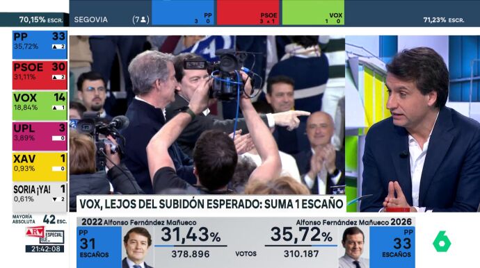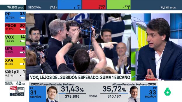 En ese sentido, también ha puesto en valor el resultado del PSOE de Carlos Martínez: "No podemos despegarnos de los ciclos cuando analizamos las autonómicas. Que en el PP haya un aumento es encomiable teniendo a Vox en ascenso, pero los socialistas vienen de una recesión y sus resultados son estables en todas las provincias salvo en Zamora".