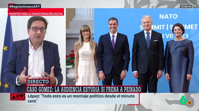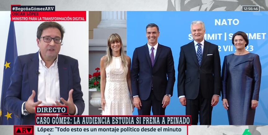 El ministro para la Transformación Digital y de la Función Pública, Óscar López, ha tachado de "montaje político" el 'caso Begoña Gómez'. "Espero que triunfe la justicia, el sentido común y la verdad", ha confesado.