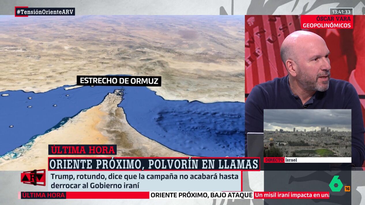 Óscar Vara, periodista de 'Geopolinómicos' confirma a Antonio G. Ferreras que el estrecho de Ormuz es un punto del planeta estratégico económica, política y militarmente. "Es absolutamente fundamental", recalca, para después añadir que "la cantidad de petróleo y gas natural licuado" que pasa por allí "es enorme".