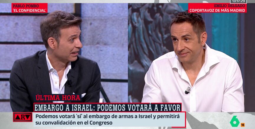 El consultor político Pablo Pombo analiza el "sí" final de la formación morada al embargo de armas a Israel después de haber realizado muchas críticas al Gobierno y de haber calificado dicho embargo como 'fake'.
