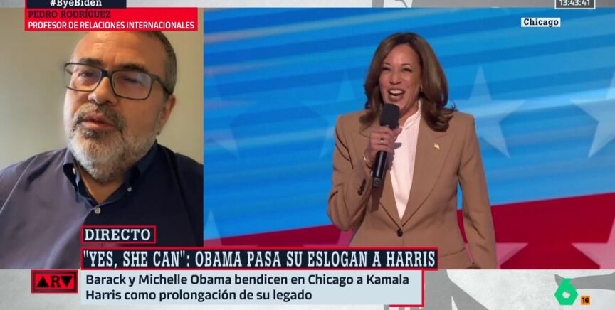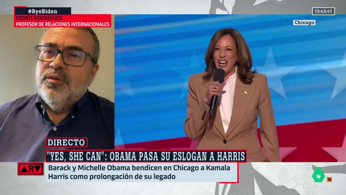 Pedro Rodríguez, profesor de Relaciones Internacionales destaca cuál es el mensaje principal de los demócratas para hacer frente a los republicanos de Trump, de cara al 4 de noviembre, día en que se celebran las elecciones en EEUU. Lo hace además, después de ver cómo los Obama se vuelcan para llevar a Kamala Harris a la Casa Blanca con su famoso 'Yes, she can' en la Convención Nacional Demócrata.