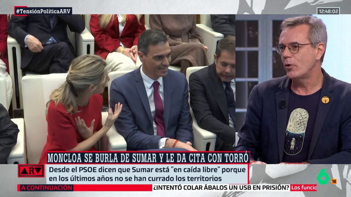 En Al Rojo Vivo, Pedro Vallín ha analizado la presión que Sumar está ejerciendo sobre el PSOE tras la crisis abierta en el Gobierno por el goteo de denuncias por presunto acoso sexual y los distintos frentes judiciales. En ese contexto, el socio minoritario del Ejecutivo ha solicitado formalmente una reunión urgente y ha reclamado, a través de un comunicado, "relanzar" la legislatura mediante cambios en el Consejo de Ministros y un mayor impulso a la agenda social. La primera de estas exigencias, sin embargo, fue rechazada por Pedro Sánchez, que descartó una remodelación del Gobierno.