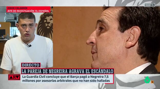 El periodista Jorge Calabrés señala que los 3 millones de euros de la pareja de Negreira "no están justificados": "Ni el origen ni la salida"