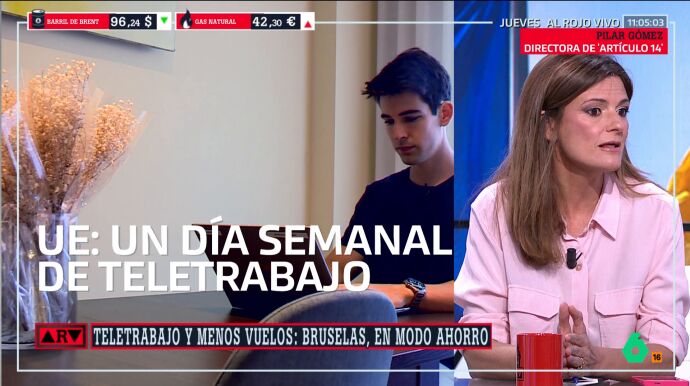Pilar Gómez ha reaccionado a estas declaraciones y a la medida de Bruselas. La periodista ha recordado que cuando en la pandemia se planteó hacer teletrabajo parecía algo "imposible" y luego se vio que se podía hacer.