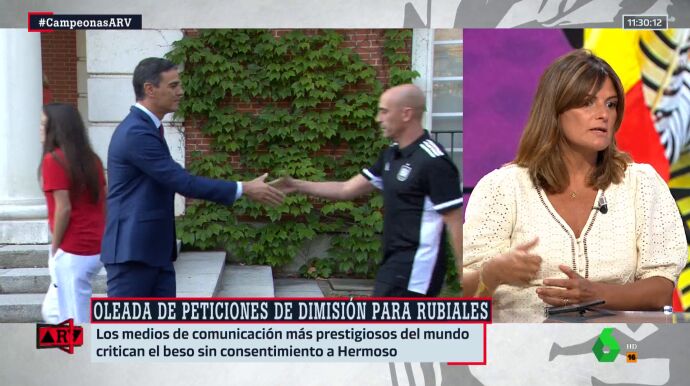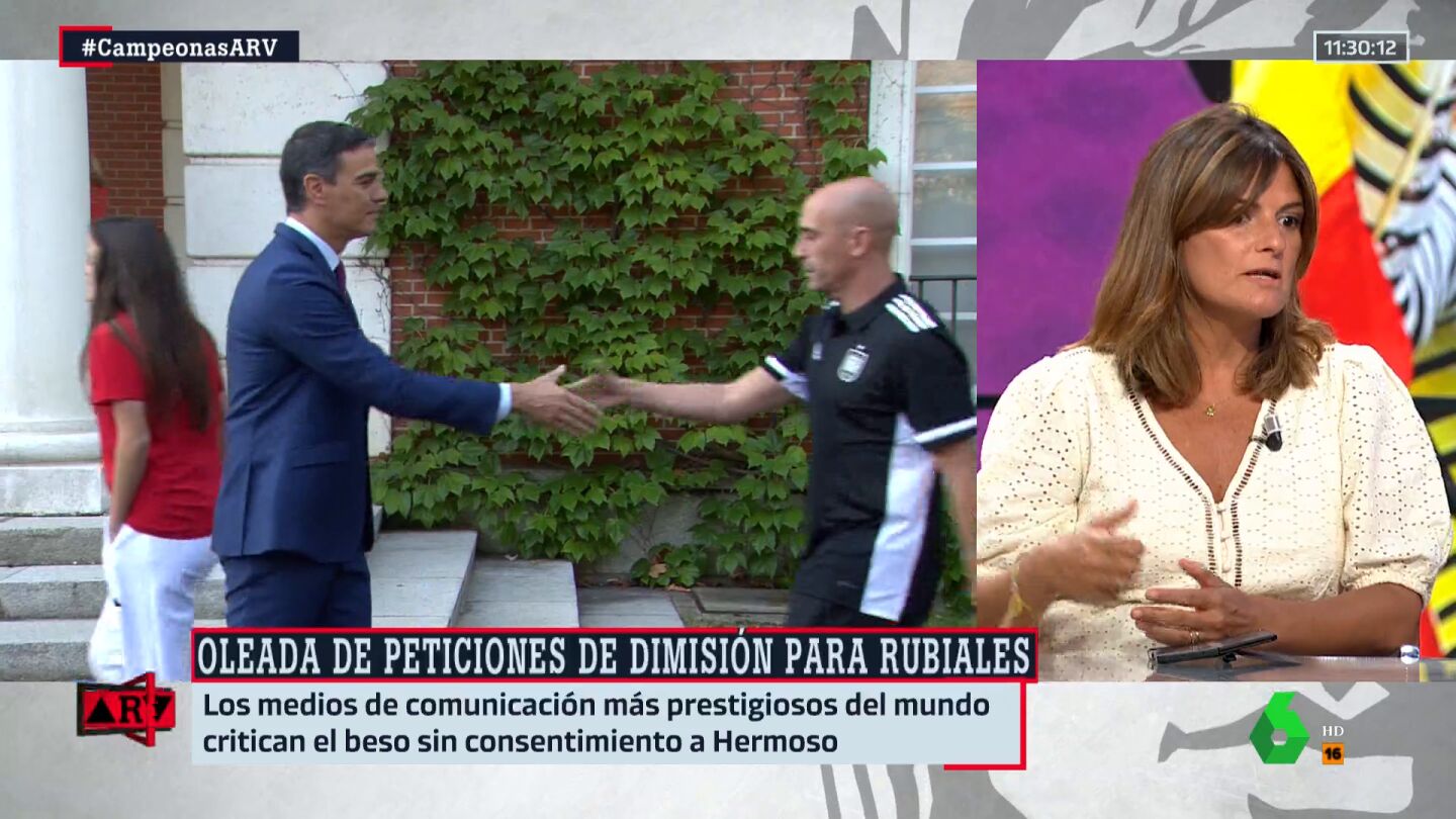 La periodista ha confesado que todo lo ocurrido "parecía un chiste", desde el gesto que tuvo durante la celebración del gol en el palco hasta las felicitaciones a las jugadoras y las declaraciones "llamando tontos a la gente que criticaba o condenaba su actitud". Unos hechos que le parecen más que suficientes para que "no siga siendo el responsable de la Federación".
