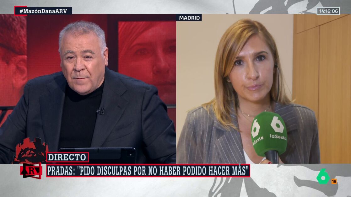 Ante la posibilidad de que la jueza de la DANA la envíe a prisión, Pradas ha mostrado su respeto a la Justicia, pero ha recordado que ella "sí estaba" donde tenía que estar. "Mi abogado, ya en el primer escrito que se presentó, habló de cabeza de turco", ha afirmado. Y sin profundizar ha seguido describiendo su trabajo durante el días de la tragedia. "Desde primera hora pedí información, también pedía saber dónde estaban desplazados los medios de salvamento, dónde estaban los medios de emergencias y así también me pasé toda la tarde, atendiendo lo que decían los expertos, los técnicos de emergencias...". Un momento de la entrevista en el que ha afeado el "intento" del Gobierno central de "hacer ver que no pintaba absolutamente nada en esa emergencia cuando yo quiero recordar que de cuatro miembros del comité asesor y de emergencias, tres eran del gobierno".
