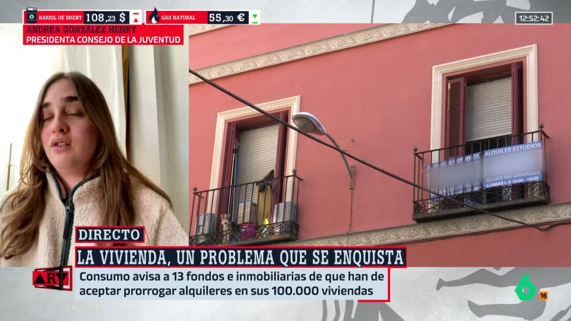 Andrea González Enrich, presidenta del Consejo de la Juventud de España, ha vuelto a poner el foco en la crisis de vivienda durante su intervención en Al Rojo Vivo. "Llevamos años alertando de esta situación, especialmente desde la juventud, pero ya no es un problema exclusivo de los jóvenes, sino de todas las generaciones", ha advertido.