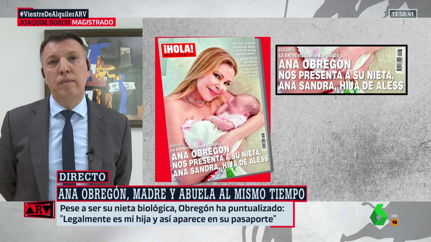 Ana García Obregón se ha convertido en madre y abuela al mismo tiempopor un vientre de alquiler en Miami con el esperma de su hijo fallecido Aless Lequio. El caso ha generado una importante repercusión política y jurídica que Al Rojo Vivo ha analizado con el magistrado Joaquim Bosch.