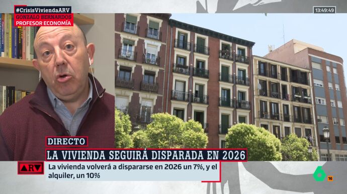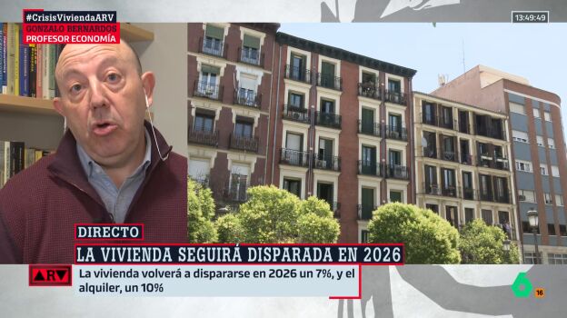 El profesor de Economía Gonzalo Bernardos analiza el aumento de los precios de la vivienda en Al Rojo Vivo. En 2026 se espera que se mantenga el volumen de compraventas y que los precios aumenten entre un 5 y un 10 %, dentro de un contexto de escasez de oferta de vivienda.