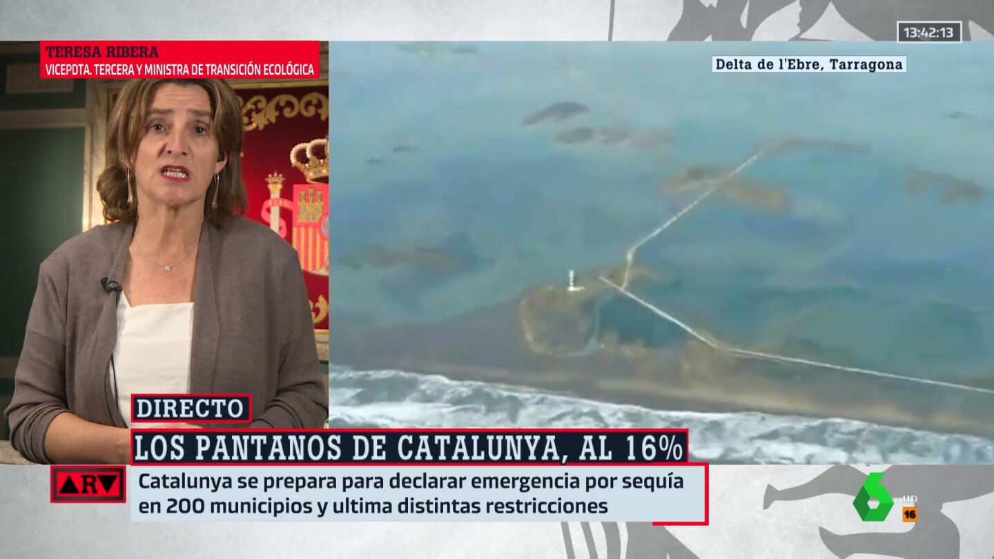 Teresa Ribera ha asegurado en Al Rojo Vivo que no le ha llegado ninguna petición de trasvase ni por parte de Cataluña ni de Andalucía. La ministra ha explicado que, lo que sí están haciendo es analizar con la Generalitat las medidas de emergencia que pueden resultar necesarias.