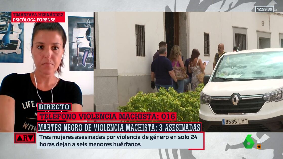 La psicóloga forense Timanfaya Hernández ha explicado en Al Rojo Vivo cuáles son las consecuencias que sufren los hijos de las víctimas de violencia machista, dejando claro que esto es algo que puede influir en su desarrollo.