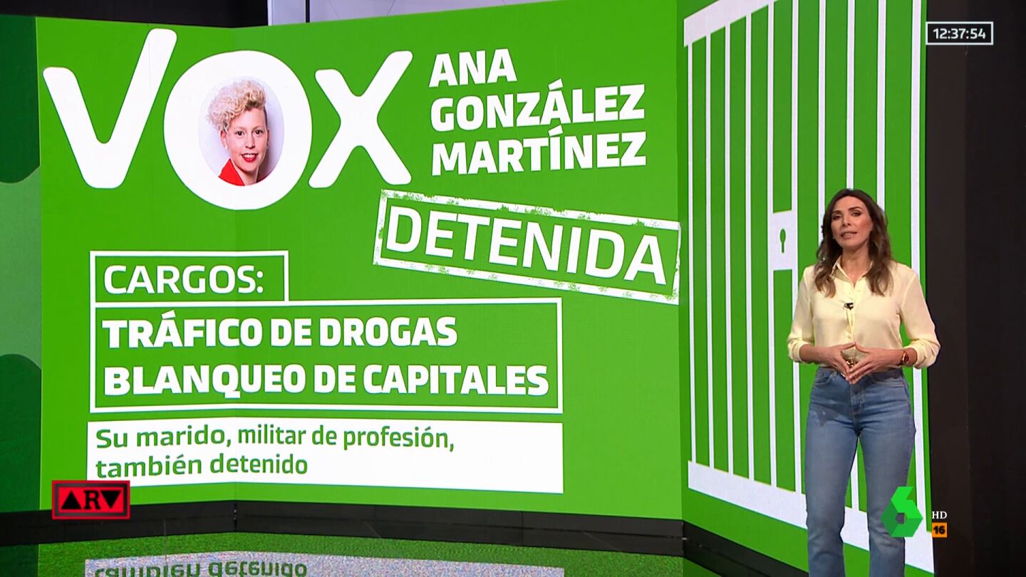 La número tres de Vox en Parla ha sido detenida junto a su pareja en una operación contra el tráfico de drogas. Está acusada de narcotráfico y de blanqueo de capitales. En Al Rojo Vivo analizan quién es Ana González Martínez.