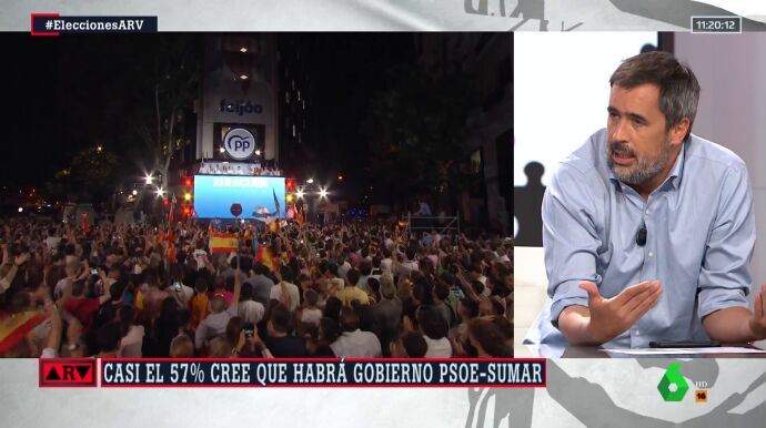 Además, el periodista ha reconocido que, aunque Vox ha sufrido un gran batacazo, cree que no está interesado en que haya nuevas elecciones. "Después de esta frustración que se ha vivido en la derecha, el riesgo es que haya todavía más voto de Vox que se vayan al PP", ha indicado.
