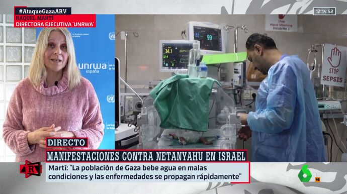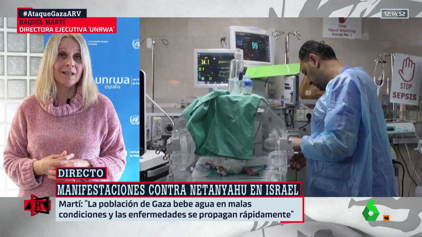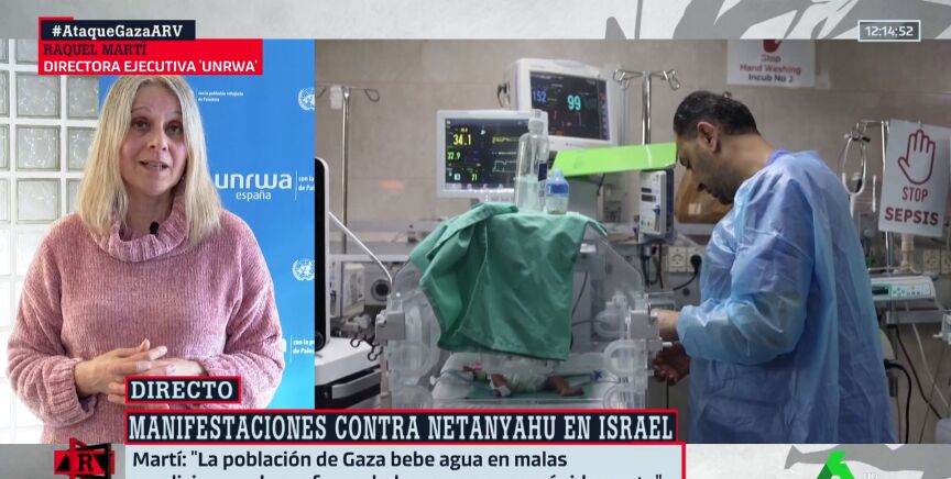 La directora ejecutiva de la Agencia de la ONU para los Refugiados Palestinos (UNRWA) en España, Raquel Martí, ha denunciado este lunes en Al Rojo Vivo la situación dramática de los recién nacidos en la Franja de Gaza. Martí calcula que han nacido dentro de la Franja unos 20.000 niños desde que empezó el conflicto el pasado 7 de octubre, y ha lamentado que "muchos de ellos terminarán falleciendo".