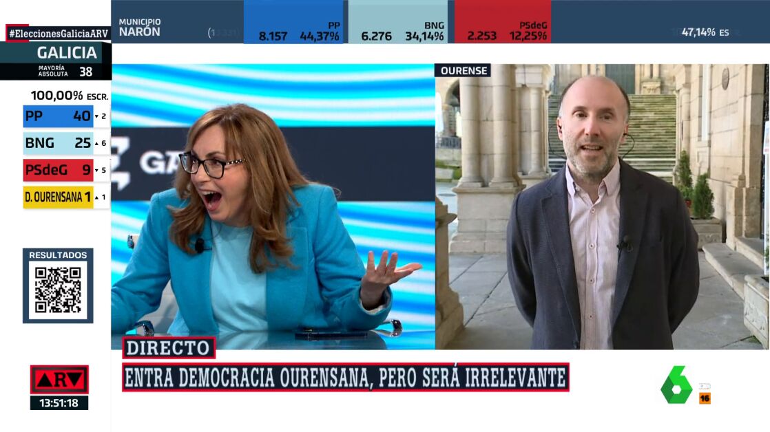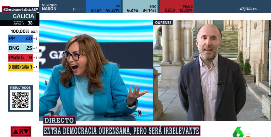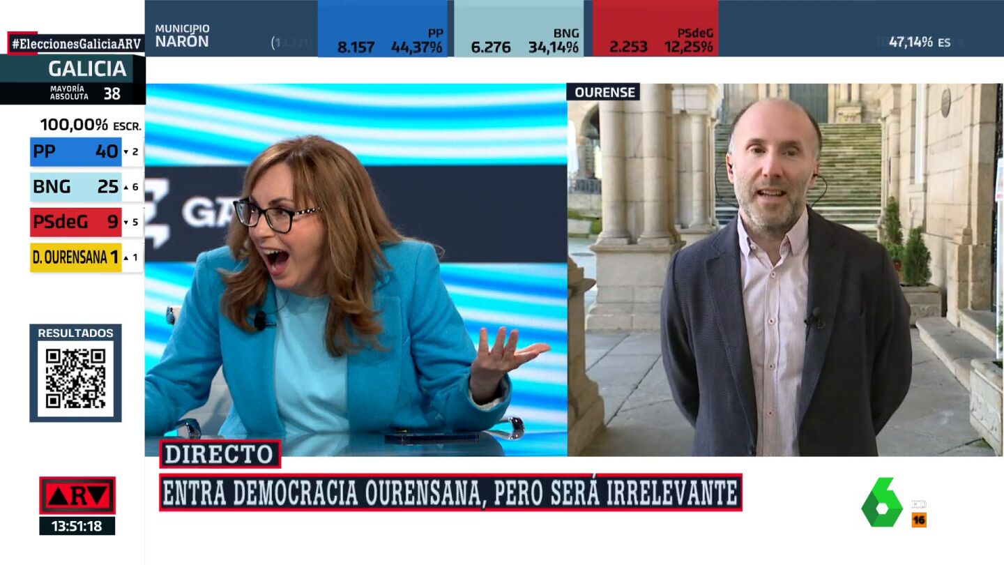 La periodista no ha podido ocultar su cara de asombro en Al Rojo Vivo al escuchar al líder de Democracia Ourensana, Gonzalo Pérez Jácome, decir que El Bierzo es un población "casi hermana" de Ourense.