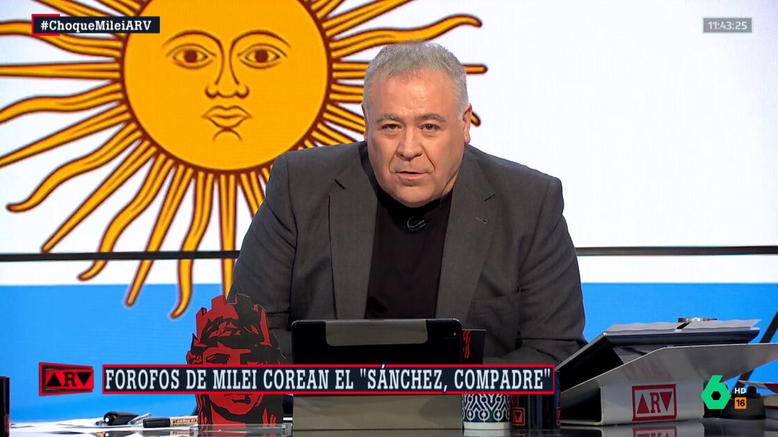 Antonio García Ferreras ha reaccionado a estas declaraciones, indicando que Milei sigue "calentando" la situación porque "no tiene límites". "Es el loco Milei, tienes un choque con un loco, y no en sentido figurado", ha indicado.