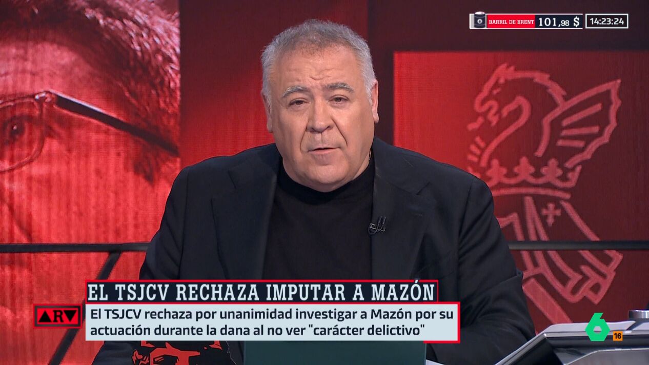 La reacción de Ferreras ante la ovación del PP a Mazón tras saber que el TSJCV descarta imputarlo: "Una ovación al mayor mentiroso de la política española"