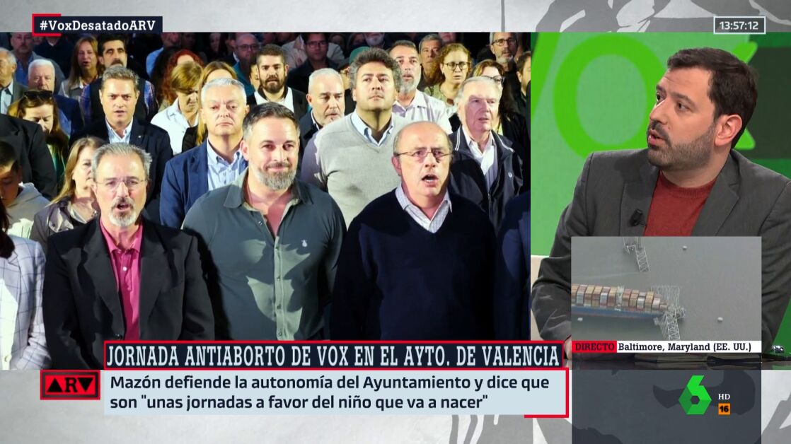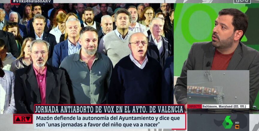 El periodista Antonio Ruiz Valdivia reaccionaba así a lasjornadas antiaborto, organizadas por Vox, en el Ayuntamiento de Valencia. En éstas, algunos diputados del partido de ultraderecha han ofrecido charlas antiaborto a alumnos de secundaria. En una de esas charlas, participaba el diputado Carlos Flores, de Vox, condenado por violencia machista .
