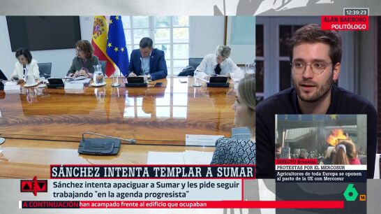 La reflexión de Alán Barroso sobre la postura de Sumar con el PSOE: "Para que sea creíble una amenaza, tiene que haber consecuencias"
