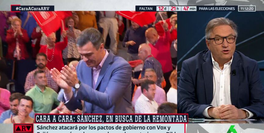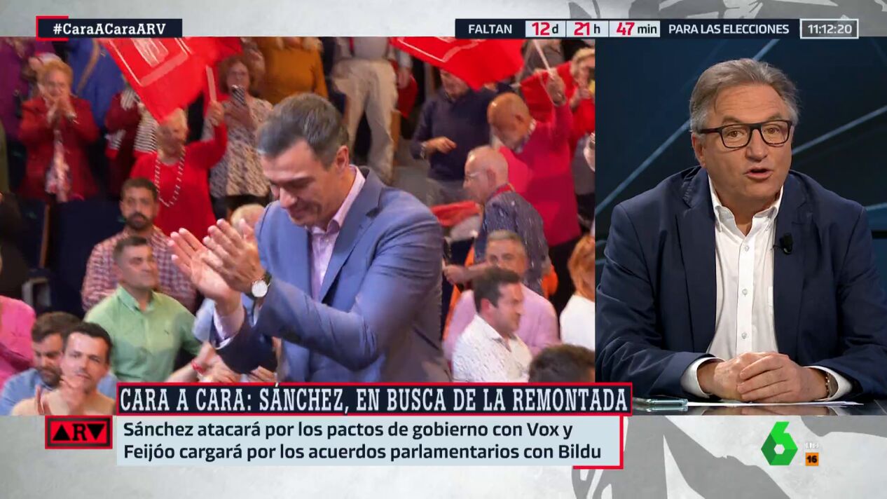 El periodista ha analizado cómo cree que será el debate entre el presidente del Gobierno y el líder del PP. "Feijóo, como van las encuestas, con salir a empatar le puede valer, mientras que Sánchez está obligado a ganar", ha indicado.