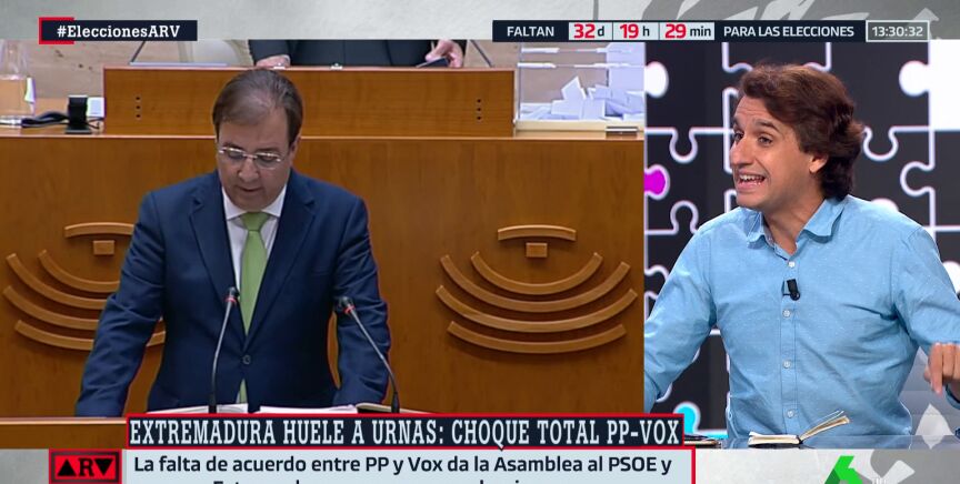 El politólogo ha analizado la ruptura que se ha producido entre el PP de Extremadura y Vox, advirtiendo que ahora lo que se busca durante las negociaciones de investidura es que "la persona con la que hay que pactar se rinda".