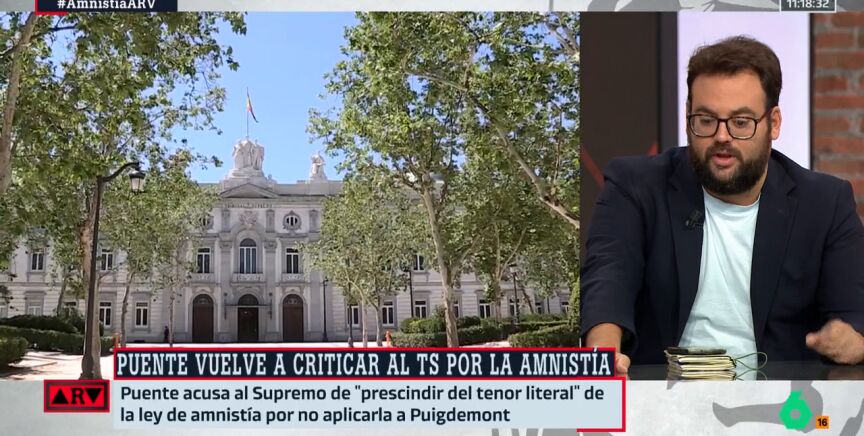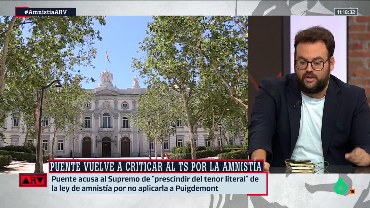 Es por ello que, "la interpretación del Supremo es tan insostenible como las acusaciones en su día de que Puigdemont estaba detrás también de un delito de de terrorismo por los desórdenes públicos de 'Tsunami Democratic'", señala el periodista, apuntando que "esto es retorcer el espíritu de la ley de amnistía".