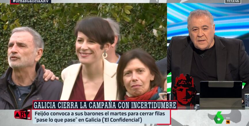 "Alfonso Rueda ha sido invitado, pero no puede. No tiene tiempo, ni para tres preguntitas", decía Ferreras, después de nombrar a muchos de los candidatos o representantes de las diferentes formaciones que han ido siendo entrevistados a lo largo de la mañana: José Ramón Gómez Besteiro (PSdeG-PSOE); Ana Pontónn (BNG); Marta Lois (Sumar); o Gonzalo Pérez Jácome (Democracia Ourensana), quien no es realmente el candidato sino el presidente y alcalde de Ourense.