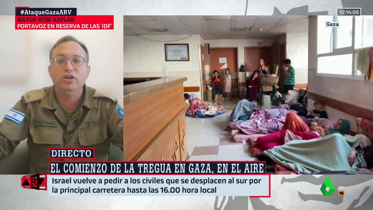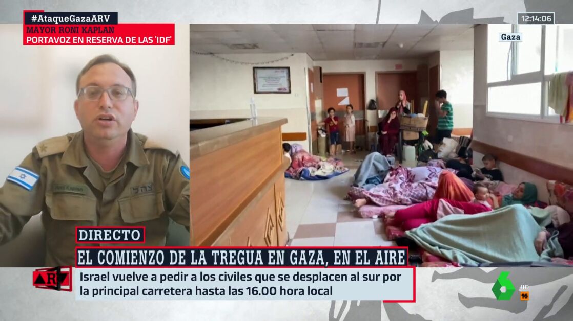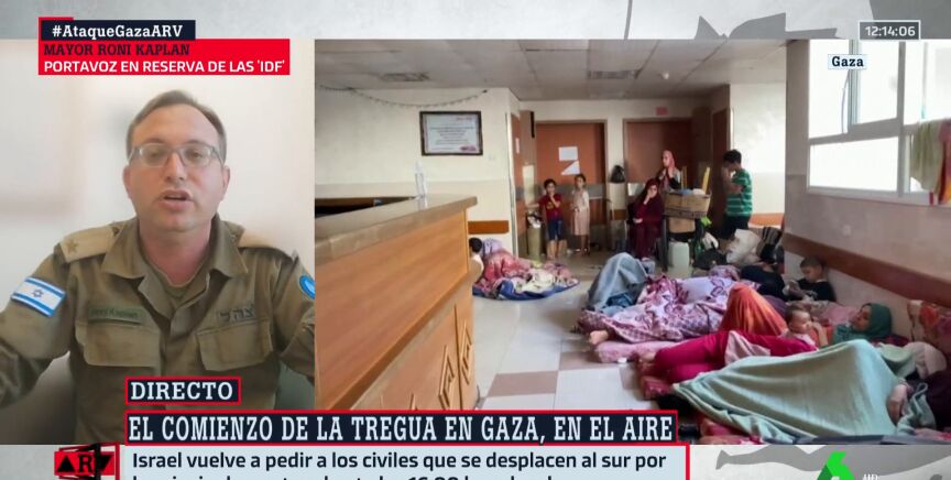 El portavoz en reserva de las Fuerzas de Defensa de Israel, Roni Kaplan, ha señalado en Al Rojo Vivo que la guerra la inició Hamás. Un momento que ha aprovechado para destacar que son ellos los que "utilizan escudos humanos".