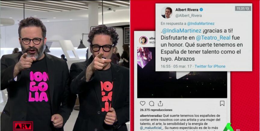 Y para demostrarlo, tienen un "tremendo exclusivón", porque han encontrado un tuit de Rivera a la cantante India Martínez en el que le dice lo mismo que le decía a Malú. "Retratado", le dicen a Rivera.