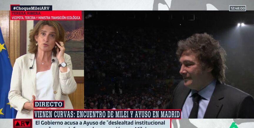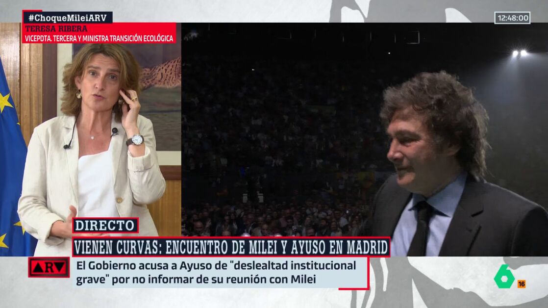 Teresa Ribera ha reaccionado en Al Rojo Vivo a la próxima visita de Javier Milei a España. El presidente de Argentina tiene previsto reunirse con Isabel Díaz Ayuso en Madrid este viernes, y es que ella será la encargada de concederle la Medalla Internacional de la Comunidad de Madrid.