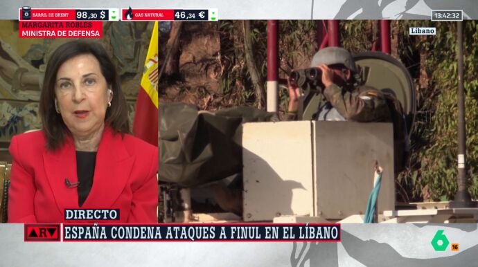 Margarita Robles, ministra de Defensa, ha pedido al PP "no caer en frivolidades" tras las palabras de Ester Muñoz sobre la retención a un militar español en Líbano. Al momento en que las Fuerzas Armadas israelíes se llevaron con "violencia" a un miembro de la FINUL y lo mantuvieron retenido durante una hora. "Dice 'no sé', pero hablo", expresa Robles.