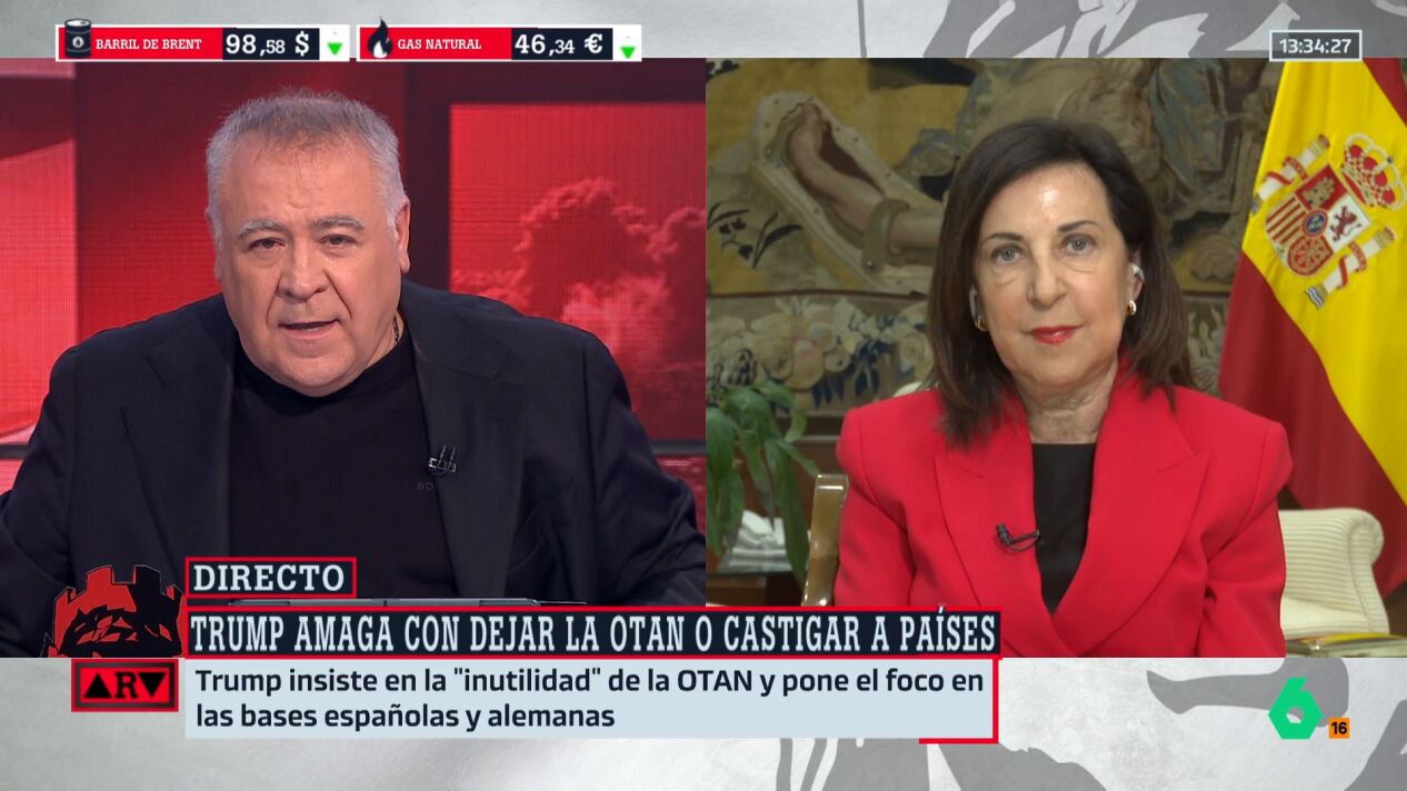 Donald Trump estaría considerando trasladar tropas estadounidenses de países de la OTAN que no colaboran en su conflicto con Irán, afectando a España por no ceder sus bases. Margarita Robles, en Al Rojo Vivo, afirmó que el Gobierno no ha recibido notificación al respecto y destacó que las bases son fruto de un convenio con EE.UU., cumpliendo una labor clave. Robles subrayó que España actúa como un país libre y soberano, trabajando por la paz, y no acepta lecciones ni amenazas. Reiteró el compromiso con la legalidad internacional y la defensa de la paz, rechazando lecciones de quienes no cumplen con el ordenamiento jurídico.