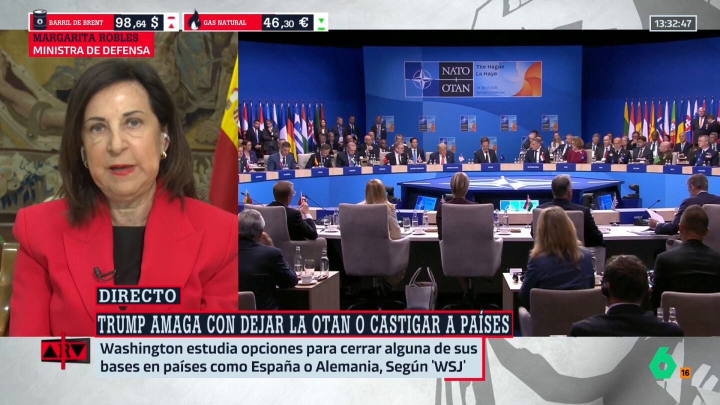 Margarita Robles ha respondido a las amenazas de Donald Trump sobre sancionar a países de la OTAN por no apoyarlo en la guerra contra Irán y su posible salida de la Alianza. En Al Rojo Vivo, la ministra defendió que España y otros países han actuado según sus "convicciones éticas" y el derecho internacional, subrayando que nadie puede obligarlos a participar en una guerra ilegal. Robles recordó el alto coste humano y económico del conflicto y reafirmó el compromiso de España con la Alianza Atlántica, que es defensiva. Además, enfatizó la importancia de la paz y el diálogo, y afirmó que respetarán cualquier decisión de Estados Unidos respecto a la OTAN.
