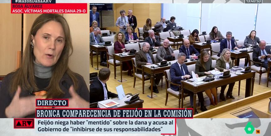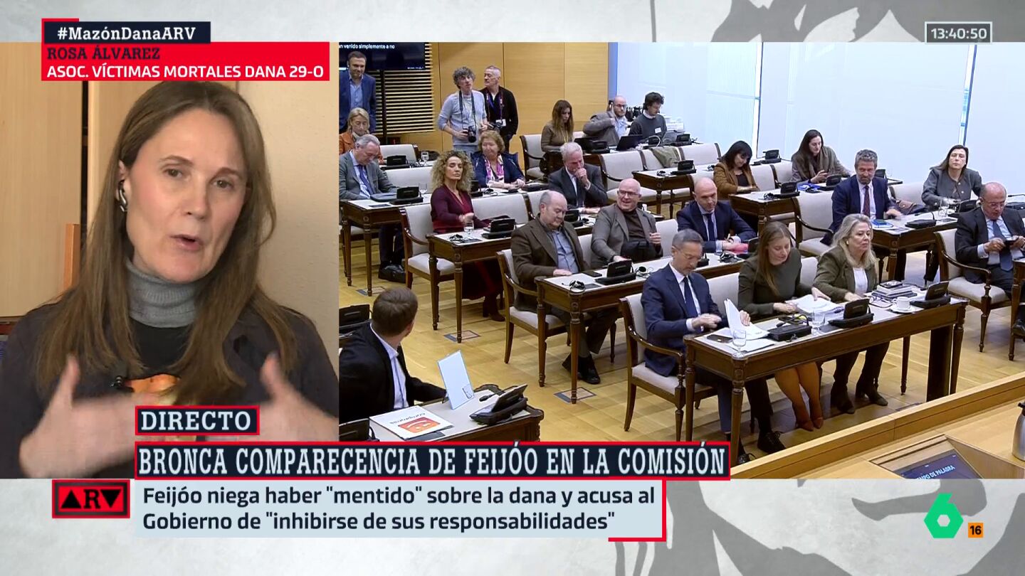 Rosa Álvarez, familiar de una víctima de la DANA y presidenta de la Asociación de Víctimas Mortales, ha hablado del impacto que le ha provocado la comparecencia de Alberto Núñez Feijóo en la comisión de investigación por la DANA. Durante su intervención, el líder del PP desvió el foco del debate con referencias al accidente ferroviario de Adamuz y a los "crímenes de ETA", pese a admitir que no tenía ninguna "autoridad" en la gestión del temporal. Feijóo aseguró además que no ha borrado mensajes de su teléfono móvil y que no tiene “nada que ocultar”.