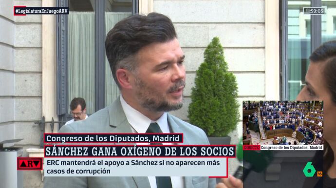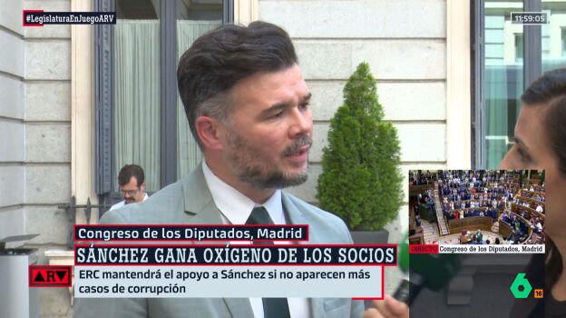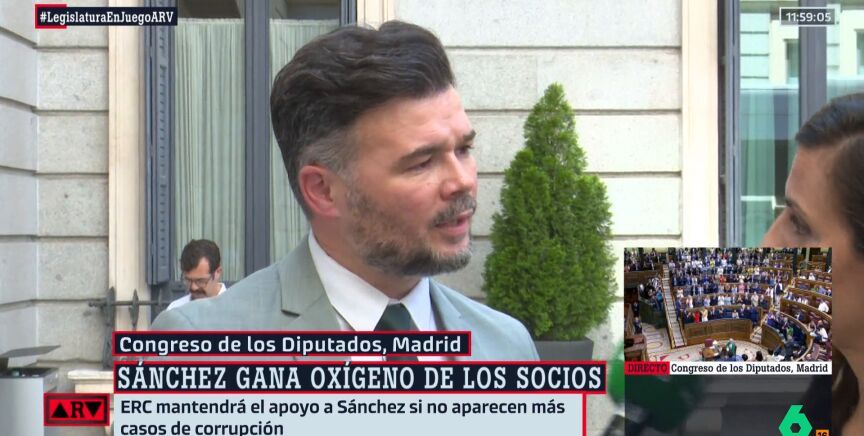 Rufián señala que ha escuchado a un Sánchez "menos tocado y en recuperación": "Sin sentencia judicial, tenemos que esperar"