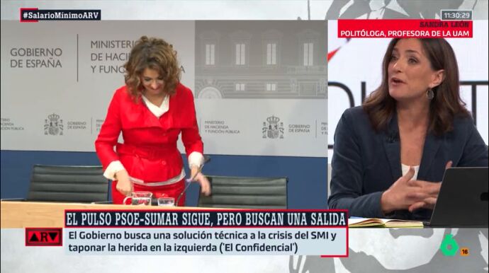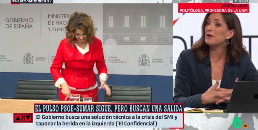 Sandra León, politóloga y profesora de la Universidad Autónoma de Madrid, analiza el nuevo choque producido entre PSOE y Sumar por el IRPF en el SMI y el encontronazo producido en la rueda de prensa tras el Consejo de Ministros: "Esta es una situación propia de 'un manual del error' en comunicación política", afirma la experta.