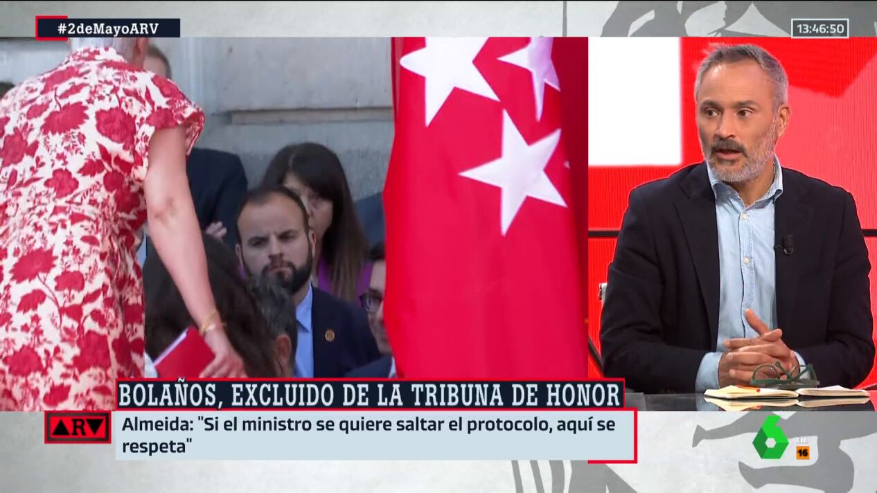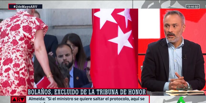 "Las imágenes describen lo que se está viviendo en la política española en los últimos tiempos". Así reacciona Santiago Martínez-Vares al ver cómo le impiden Bolaños subir a la tribuna de autoridades en el acto del Dos de Mayo.
