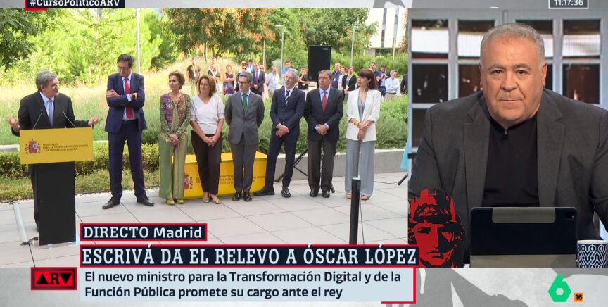 Y además, añade el periodista y presentador del programa, "uno de los sueños de su vida política era llegar a ser ministro". En el vídeo podemos al completo tanto el análisis de Gómez como las palabras de García Ferreras sobre el que es ya nuevo ministro del Gobierno de Sánchez. El relevo de Óscar López en el gabinete de Presidencia lo ocupará el extremeño Diego Rubio.