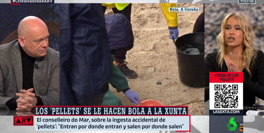 La sindicalista Afra Blanco responde en Al Rojo Vivo a la Xunta de Galicia por la gestión del vertido de pellets, especialmente tras las palabras ante los medios de comunicación del Consejero de Mar , Alfonso Villares, quitando importancia a la toxicidad de estos microplásticos: "Estamos perjudicando al sector y no estamos siendo reales (...) En el caso de comer accidentalmente algunos de estos plásticos, son productos que entran por donde entran y salen por donde salen".