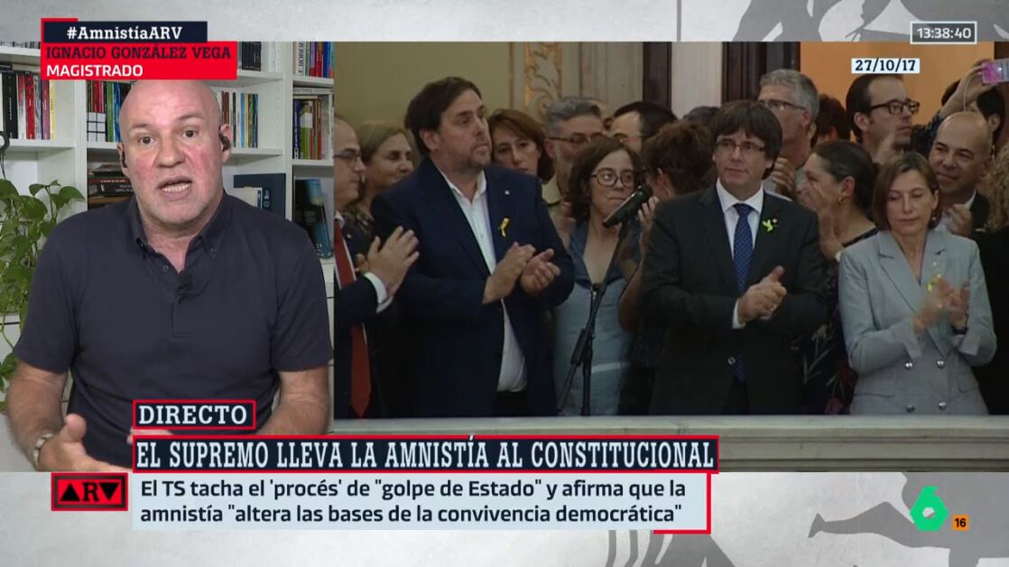 Ignacio González Vega ha reconocido que, a pesar de esta decisión del Supremo, los jueces pueden y deben seguir aplicando la ley de amnistía, señalando que si no están conformes lo que deben hacer es "plantear la cuestión de inconstitucionalidad ante el Tribunal Constitucional".