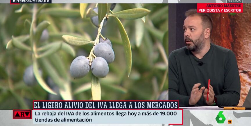 El periodista Antonio Maestre ha criticado tajantemente la rebaja del IVA a los alimentos básicos que ha aprobado el Gobierno, ya que considera que solo beneficia a los grandes supermercados. "Estamos subvencionando con recursos públicos los márgenes de las grandes distribuidoras", ha reprochado.