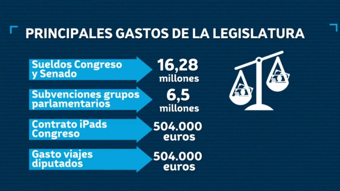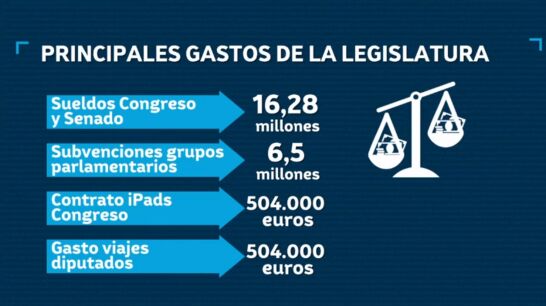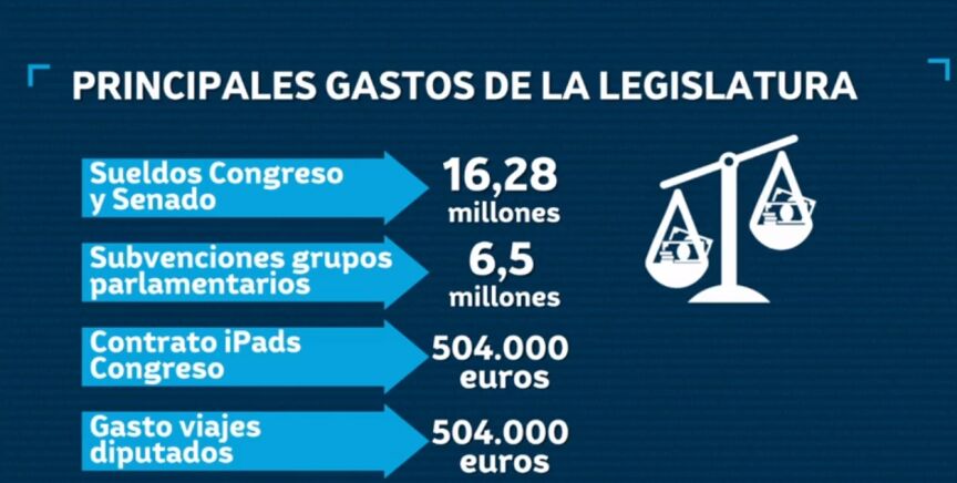 El gasto total de la legislatura, según publica Newtral, es de 23,8 millones de euros divididos en sueldos de los diputados, subvenciones a los grupos, viajes y ipads.