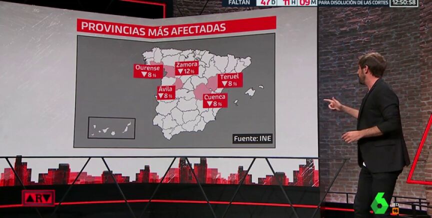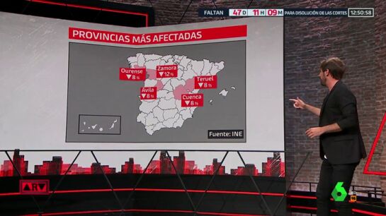 Si nos centramos en la despoblación en base a las provincias, hay una tendencia de despoblación masiva. Zamora es la que más ha sufrido: allí ha caído la población en los últimos años en un 12%. En torno a un 8% en Ourense, Ávila, Cuenca y Teruel.